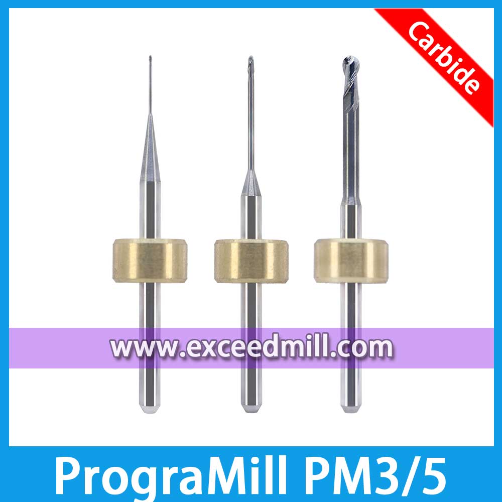 PrograMill PM3/5 Carbide Tools for Milling Zirconia, Wax, PMMA, PEEK, Soft Metal