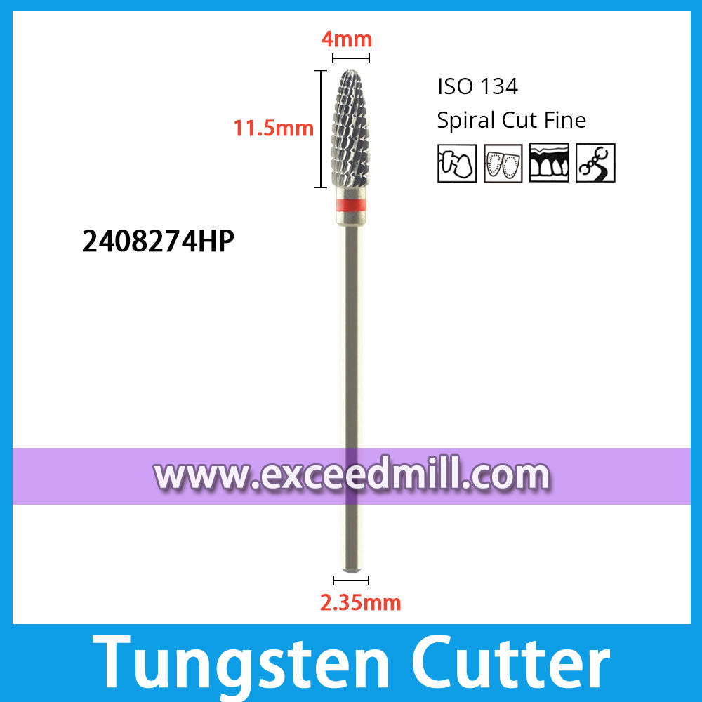 2408274HP-Spiral Cut Fine Dental Laboratory Tungsten Carbide Cutter 2.35mm Shank