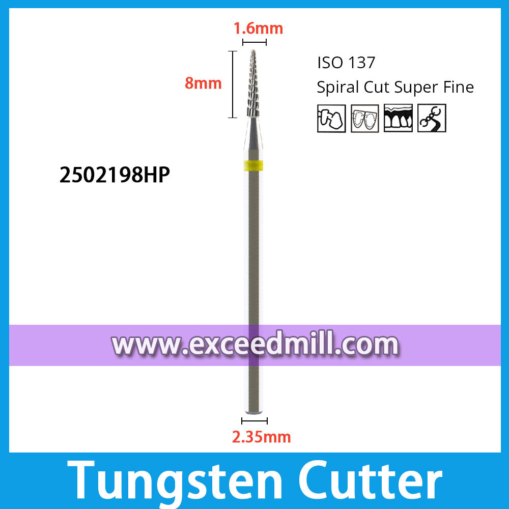 2502198HP-Spiral Cut Super Fine Dental Laboratory Tungsten Carbide Cutter 2.35mm Shank