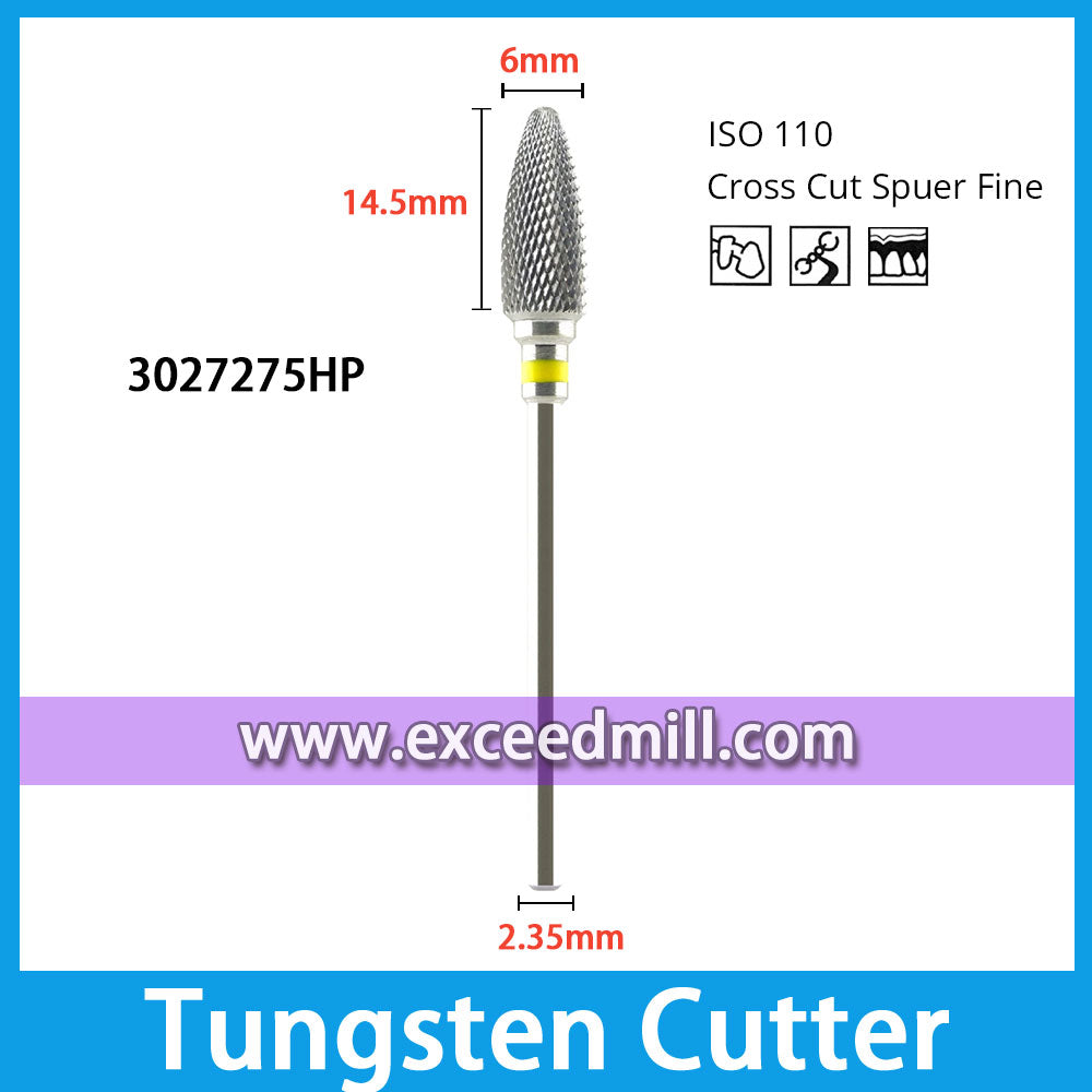 3027275HP-Cross Cut Super Fine Dental Laboratory Tungsten Carbide Cutter 2.35mm Shank