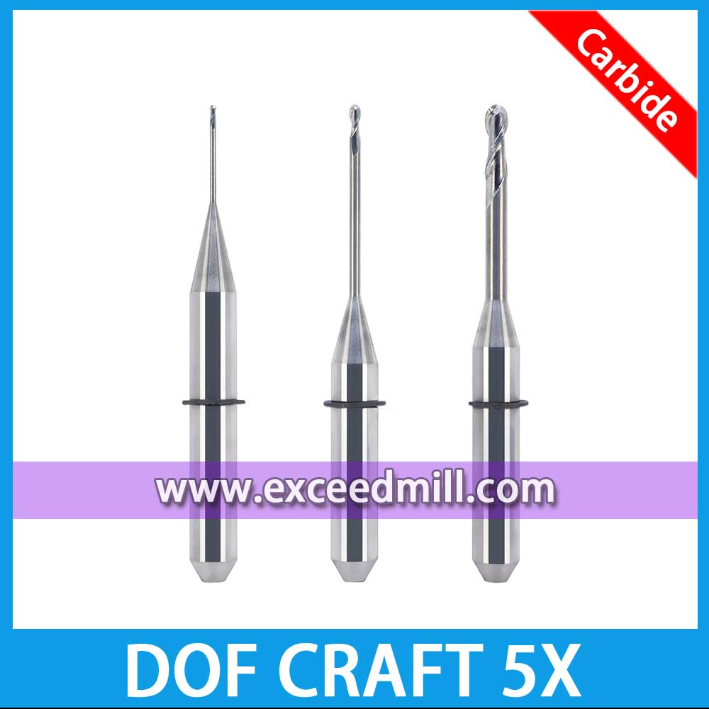 DOF CRAFT 5X CAD/CAM Carbide Tools for Milling Zirconia, Wax, PMMA, PEEK, Soft Metal, etc.
