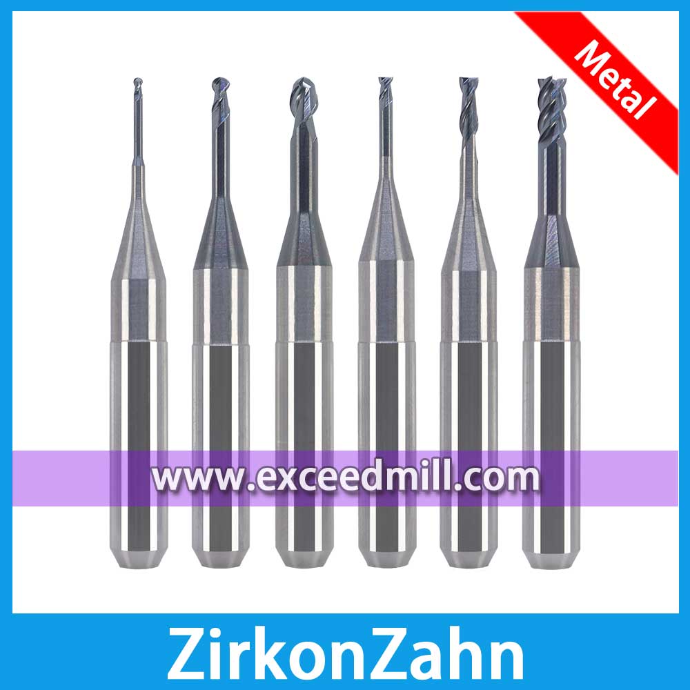 ZirkonZahn M1 CAD/CAM Tools for Milling Titanium, CoCr with Ball-end and Flat-end